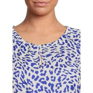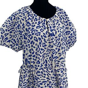 The Get Womens Animal Print Keyhole Puff Sleeve Summer Dress Blue Large NWT