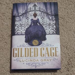 Hardcover book titled 'The Gilded Cage' by Lucinda Gray. Features a striking cover with a woman in a blue dress.