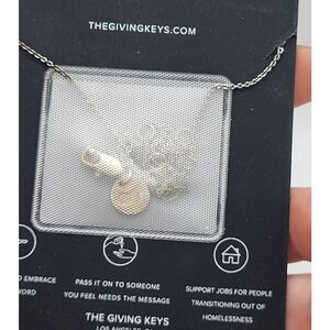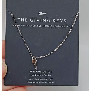 The Giving Keys Necklace Silver Tone Key Pendant Dainty Simple Mini 16in -18in Materials: silver tone metal alloy Length: 16in to 18in Signed? yes New With Tags