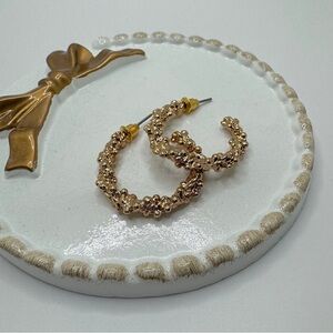 Goldie Textured Cuff Hoop Earrings , high-quality stainless steel with a yellow gold finish, these earrings are designed to stand out.