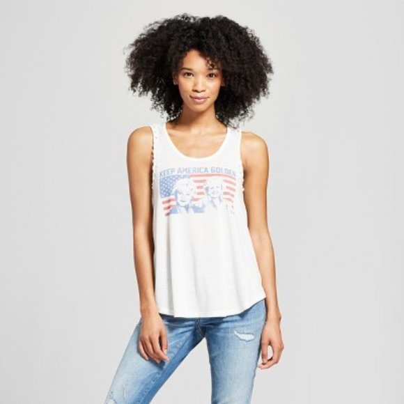 The Golden Girls "Keep America Golden" White Flowy Graphic Tank Top Sz Small NWT