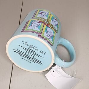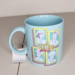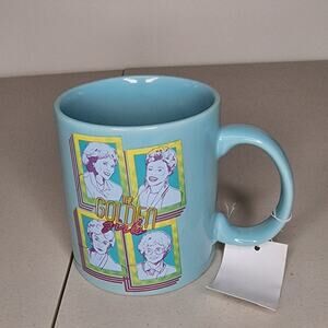 Item: New Golden Girls Mug in a Light Blue with the 4 images of each lady with a frame surrounding each image.
