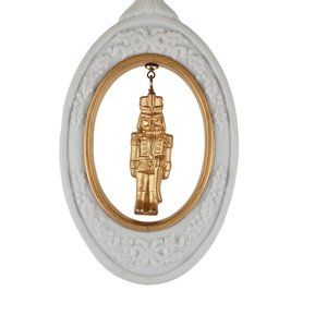 The Golden Treasures of Christmas Porcelain Ornaments Set of 2 Santa Claus Nutcr