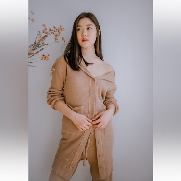 The Good Alma Women’s Waffle Tan Cardigan Duster XS Loungewear Beach Leisure Top