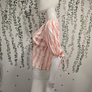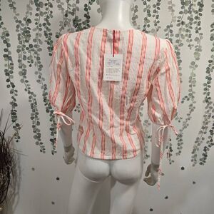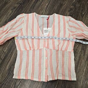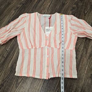 The Good Jane Striped Button Front Peplum Top Puff Sleeve NWOT Size Small (Measu