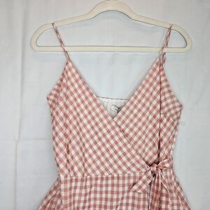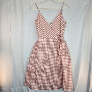The Good Jane Womens Gingham Pink and Ivory Dress Sz M Front Tye Adj Straps