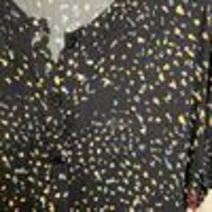 30” shoulder to crotch, 19” pit to pit, 3” inseam, tie waist, lined, button front,