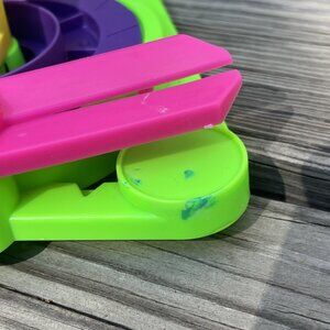 All parts for Jam Maker assembly, tested, Includes directions, extra rubber bands, die, board clips, and half of grape mold. EXCLUDES BOX, BOARD and other half of grape mold. From clean pet free home. Some parts of the jam maker have some paint, or staining from playdoh? Please see photos.