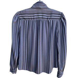 The Great American Short Story Vintage 70s Gray Striped Bow Puff Sleeve Blouse M