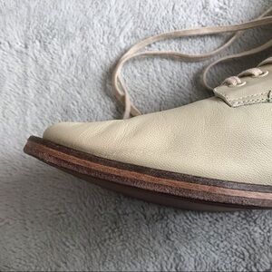 Excellent used condition. The Boxcar Boot by The Great. in Vanilla, a creamy white shade with brown outsole. Lace-up "granny boot" workwear, prairie dressing style. Ankle boot with signature tooled ridge down center toe and twill tape finished canvas lining. Cotton laces, long enough to wrap around the ankle and tie back in front. Leather upper and sole. Note: light creasing to upper, leather softening, and minor surface scuffs, see photos. Size 9.5, see photos for measurements.