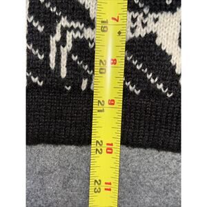 The Great Cardigan Women's Sz 1 Chalet Lodge Faire Isle Black and White Cardigan is a stylish and cozy winter sweater perfect for chilly days and winter nights. Made with a tight-knit fabric of nylon, wool, and acrylic, this collared cardigan features a classic black and white color scheme with a relaxing fit. Ideal for travel, parties, casual outings, or workwear, this sweater is designed with long sleeves and pockets for added convenience. The cardigan's theme revolves around a chalet nature-inspired aesthetic, making it a versatile and fashionable choice for various occasions during the winter, fall, or spring seasons.