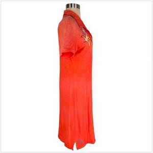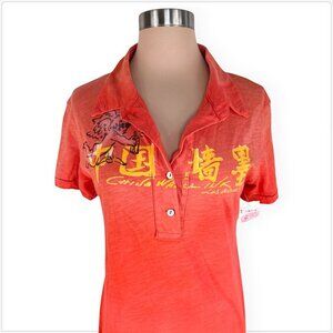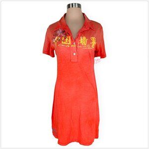 The Great China Wall Ink Orange Red Angel Can Logo Polo Shirt Dress NWT NEW M