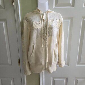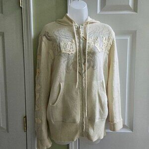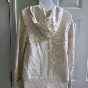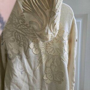 The Great China Wall Rare Cashmere Cream Embroidered Floral Geometric Hoodie