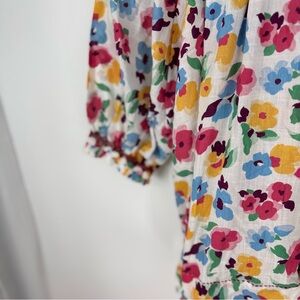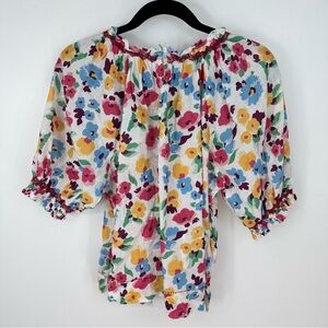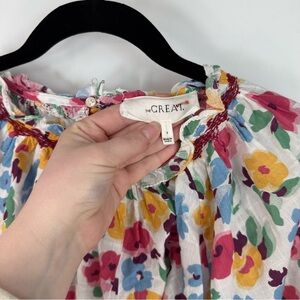 The Great. Cotton Abstract Floral Prairie Balloon Sleeves Shapeless Blouse