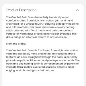 The Great Crochet Short Sleeve Polo Midi Dress Size 0/XS