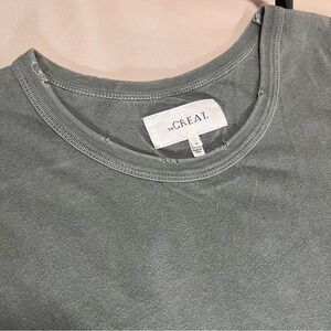 The Great Distressed Cotton Maxi Dress Sage Green Side Slit Sleeveless Size M. Please review all pics, including size chart and measurements. Dress is The Great Size 2 = Medium - Good pre-owned condition