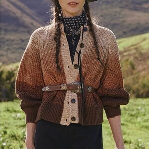 The Great. Dusk Ombré Stripe Chunky Knit Cardigan Sweater