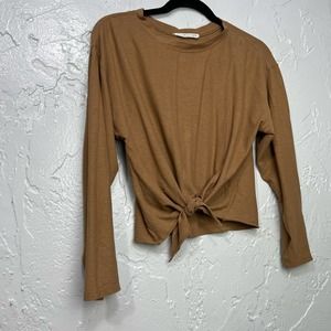 The Great Eros Gita Tie Front Vicuna Top Size XS Long Sleeve Cropped Top