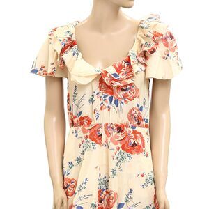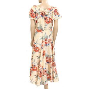 The Great Floral Printed Midi Dress Buttondown Ruffle Silk Resort S-1 New 279907