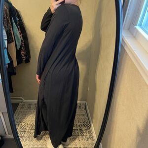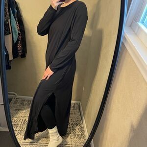 Features: long sleeves, crew neck, side slits, loose relaxed fit, long maxi length, 100% cotton, in black