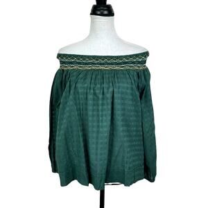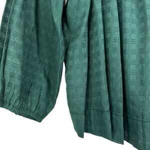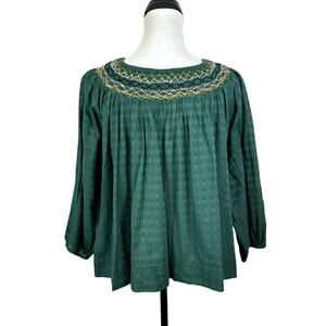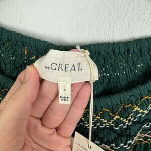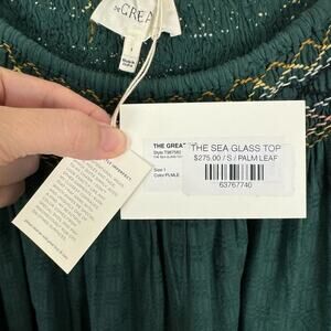 The Great NWT Sea Glass Top Palm Leaf Green Smocked Billowy Checked Cotton Top