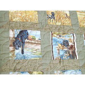 The Great Outdoors Small Quilt Hunting Dogs Fish Wildlife Farmhouse 20.5x25.5"