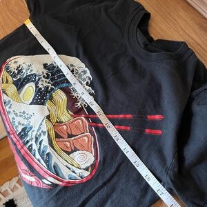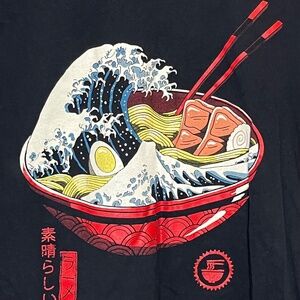 Vibrant Japanese-style wave in a ramen bowl print. Soft cotton. Color is black.