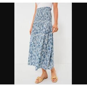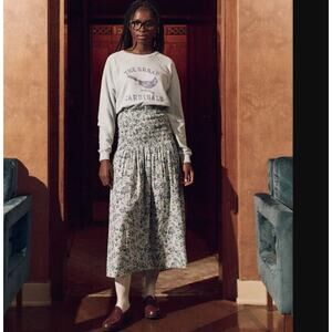The Great. SET Light Sky Pressed Floral The Knoll Skirt & Wren Top Women's size 0 / Extra Small 100% Cotton Smocked Waist Skirt length approx. 36" Unlined Short Sleeves Button Front