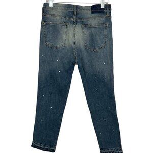 The Great. Size 27 The Fellow Rhinestone Boyfriend High Rise Raw Hem Jeans