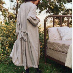 This robe is made from an ultra-soft cotton reminiscent of your favorite vintage sweatshirt. It features an extra-long length, relaxed fit, shawl collar, wide, slightly shortened sleeves and a secure waist tie.