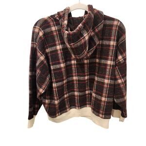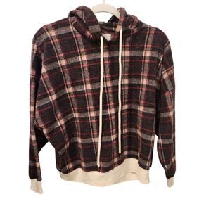 An oversized graphic plaid print hoodie with contrasting cuffs that features authentic vintage details, a drawstring hood, and a slightly cropped body 70% cotton, 30% polyester