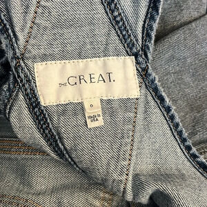 Size 0 (XS) The Great. The Shop Overall in Iron Wash. Waist 17”, rise 21”. Distress, weathered appearance by design/style. Never worn, no tags.