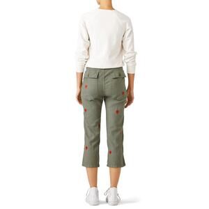 The Great jeans, The Great Amy Pant, The Great embroidered denim, green heart appliqué jeans, cropped straight leg pants, size 27 women’s jeans, boutique denim, premium denim made in USA, straight cut designer jeans, playful embroidered jeans, women’s casual chic pants, cotton stretch jeans, spring fashion denim, trendy green jeans