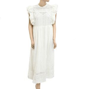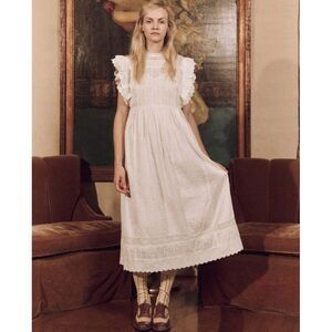 The Great. Trellis Midi Dress Eyelet Embroidered Ruffle Lace White S 1 279877
