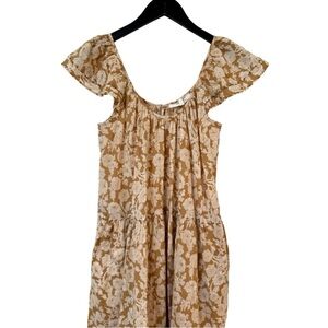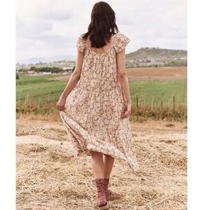 The Great Whip-Stitched Plumeria Flutter Sleeve Midi Dress XS Wild Brush Floral