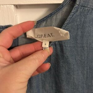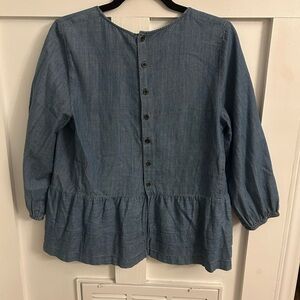The Great. Women's Blue Denim Chambray Back Buttoned Layered Peplum Top Sz 0 XS