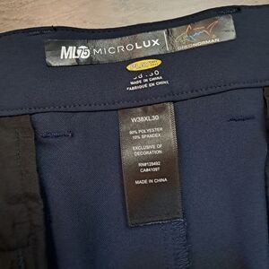 The Greg Norman Men's 38x30 Navy Golf Casual Chino Trousers are a versatile and stylish piece for any man's wardrobe. Made from a blend of polyester and spandex, these pants offer comfort and flexibility for all-day wear. The solid navy color and straight leg style make them a classic and timeless choice. Featuring a zip and snap closure, slash pockets, and a range of occasions from casual to formal, these trousers are a practical and fashionable option for any season. Perfect for golf, work, or even a night out, these pants combine quality and style.