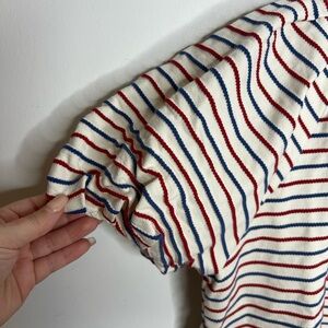 The Greii Striped Puff Sleeve Top Red White Blue Cotton Blend Tee Size Small