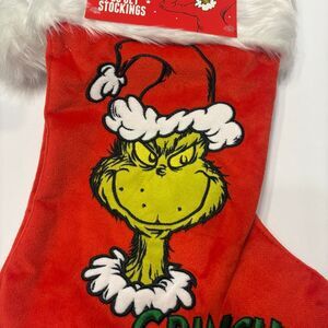 The Grinch Dr. Seuss 2 Pack Stocking Grinch Max Red Faux Fur Cuff NWT. One stocking has the grinch, the other is max! Has tassels and faux fur too. All items from smoke free, pet friendly home. Open to offers and bundle for a discount! Items cross posted.