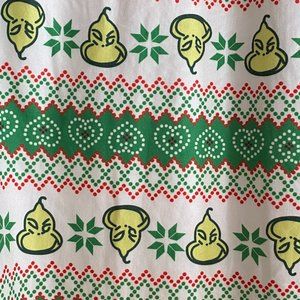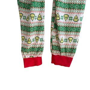 The Grinch Fair Isle Onesie Union Suit Loungewear Sleep Christmas Pajamas Features: -men's one piece, union suit, Christmas pajamas -novelty print Grinch face all over -fair isle patterning -contrast solid red neckline, placket, cuffs -button front (about half way down) -crew neck -long sleeve -relaxed fit -buttery soft, silky feel -white, lime green, Christmas green, red -no materials tag -size Dad M (could be unisex) measurements are taken flat and are approximate: armpit to armpit: 22" shoulder to hem: 56" inseam: 28" style profile: pjs, union suit, pajama, sleepwear, sleepwear, loungewear, leisure, iconic, classic, iconic, movie night, weekend, fun, dress up, onesie, classic movie, novelty print, pop culture, Christmas, Christmas Eve, opening presents, family tradition