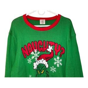 The Grinch Men's Green Red Ugly Christmas Sweater Naughty Who Me? Size XL