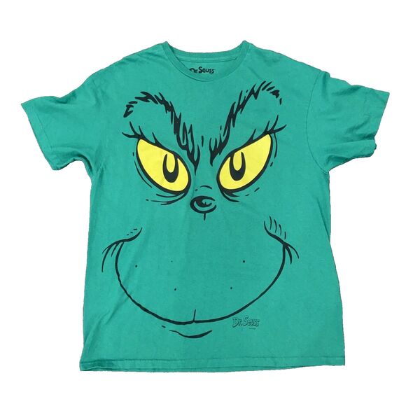 The Grinch T Shirt Mens XL Green Dr Seuss Book Film Movie Cartoon Big Face
