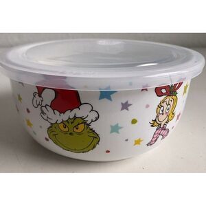 The Grinch Whoville Cindy Lou and Max Christmas Ceramic Storage Bowl Container Pressure Lid LARGE NEW