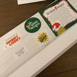 πŸŽ„ Embrace the magic of the season with The Grinch Christmas Stocking Holder, the perfect addition to your festive decor! 🎁 🌟 The Grinch Stocking Holder boasts a clean white background adorned with the whimsical phrase "The Stockings Were Hung," presented in the classic Grinch green font. πŸ–οΈ Watch as the Grinch's mischievous hand extends, holding a strand that gracefully leads to the stocking knob below, infusing your space with a playful and festive touch. 🧦 With a row of round holder knobs, this stocking holder not only adds charm but also provides a practical and visually pleasing way to display your stockings. πŸŽ… Transform your mantel or banister into a festive wonderland by effortlessly hanging up your stockings for the holiday season. Sprinkle a touch of Grinchy charm throughout your home, creating lasting memories with family and friends. πŸŽ„ This Christmas stocking holder is designed for easy installation, ensuring a stress-free setup during the bustling holiday season. It stands up flat or can be easily hung up. This stocking holder is part of the Hobby Lobby Grinch Dr. Seuss Designs line. It is currently sold out. Looking for stockings to hang up on this? I have FOUR Grinch theme stockings that can be hung on this! Dimensions: 4.3" H x 29.92" W x 1.63" D