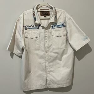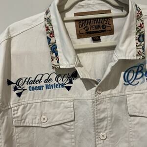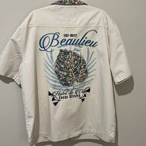 🌴 The Grindhouse‎ Denim Co. Beaulieu Sur-Mer Embroidered Shirt 2XL XXL Men’s
