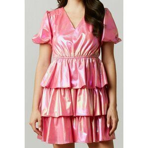Hit the town looking flirtatious and fun in this show-stopping dress! Iridescent fabric, puff sleeves, and a tiered skirt are just a few of the features that'll make you stand out from the crowd. While the elastic waistband keeps you comfy - no need to sacrifice style for comfort!