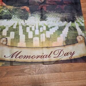 The Hamilton Collection Memorial Day Banner Flag is a multicolor, double-sided banner. Measuring 39" x 28.5", this flag is a patriotic and decorative addition to any yard, garden, or outdoor living space. Made in China, this banner pays tribute to American soldiers and is perfect for showing support and appreciation during Memorial Day or any time of year. Please note that the item is used and does have a stain on it. Please see the photos. Otherwise, it's in good condition. From a smoke-free environment.