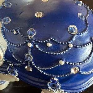 Beautiful hand painted adorned with a Swarovski Crystals elephant figurine. No chips or cracks.Dimensions are: 9”l 7”h. Check pictures for details