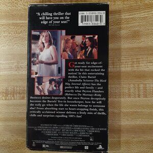 Rebecca De Mornay stars as a nanny with an evil agenda in this psychological thriller directed by Curtis Hanson (L.A. CONFIDENTIAL). When her new obstetrician Dr. Mott (John DeLancie), touches Claire Bartel (Annabella Sciorra) inappropriately during an exam, Claire reports him. The scandal ultimately causes Dr. Mott's suicide and his wife's miscarriage. Determined to have both a child and revenge, Mrs. Mott (De Mornay), now going by the name Peyton Flanders, poses as the perfect nanny and is hired by Claire and her husband, Michael (Matt McCoy), to care for their young daughter, Emma (Madeline Zima), and infant son. Seemingly sweet and helpful, Peyton slowly infiltrates the family's world. Once she has gained their trust, she begins to wreak havoc in their lives. Claire begins to doubt her husband's fidelity, her abilities as a mother, and virtually every other aspect of her life--including her sanity--as Peyton deliberately tries to ruin her life and replace her as a wife and mother. De Mornay is a delicious villain--all sugar and spice in front of the family but positively venomous when plotting and executing her revenge. Director Hanson crafts his thriller with great skill and attention to character, making this a must-see.