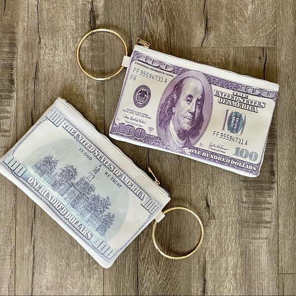 NEW* Hundred Dollar Bill Clutch with gold ring.
